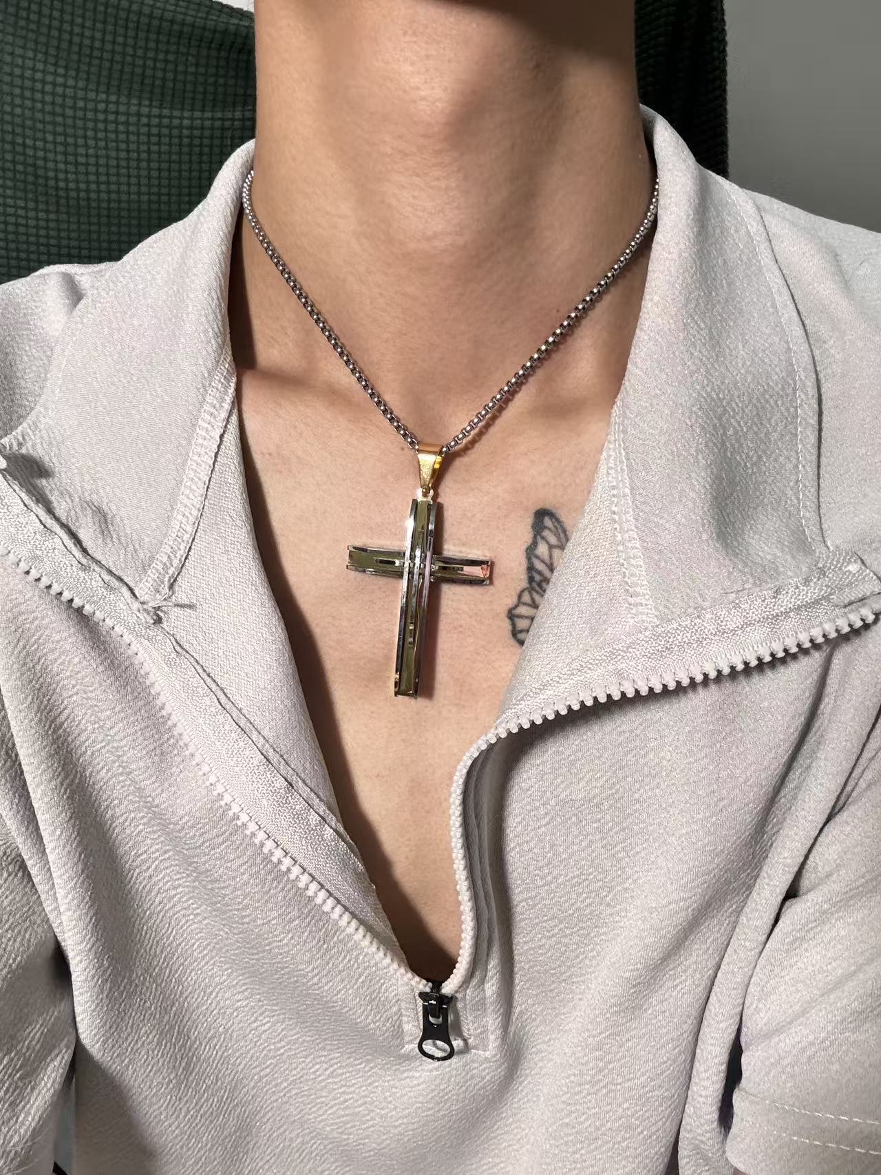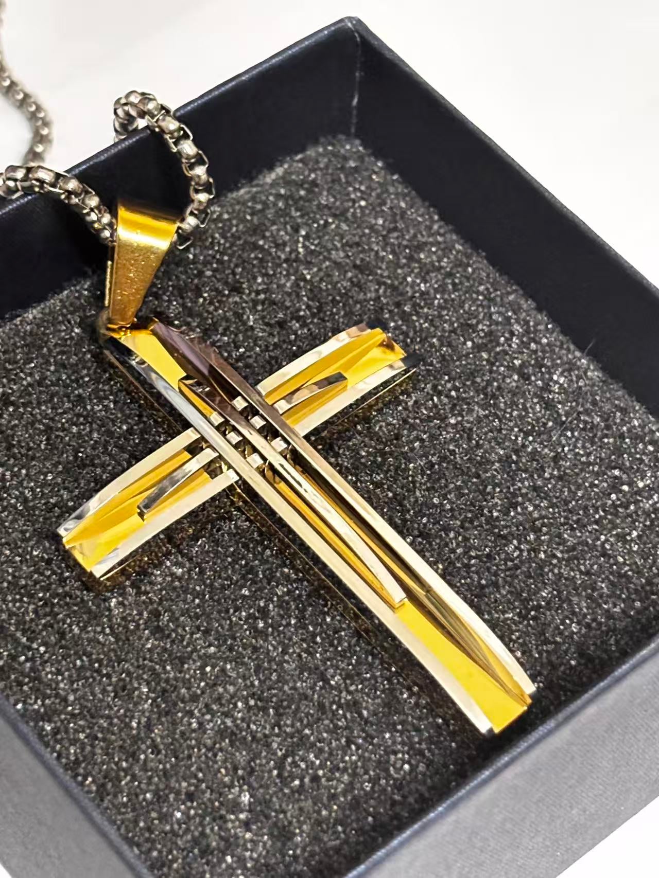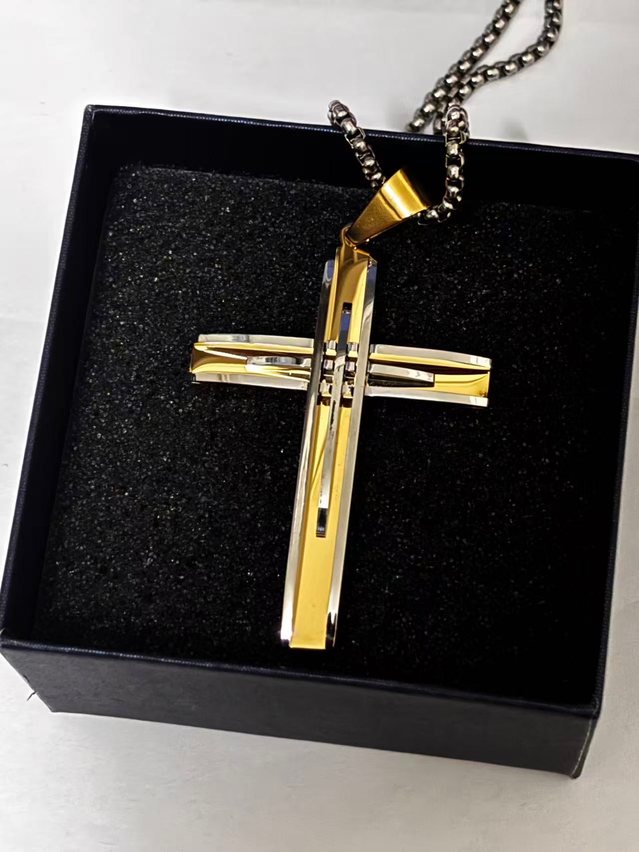 双拼色高端十字架吊坠