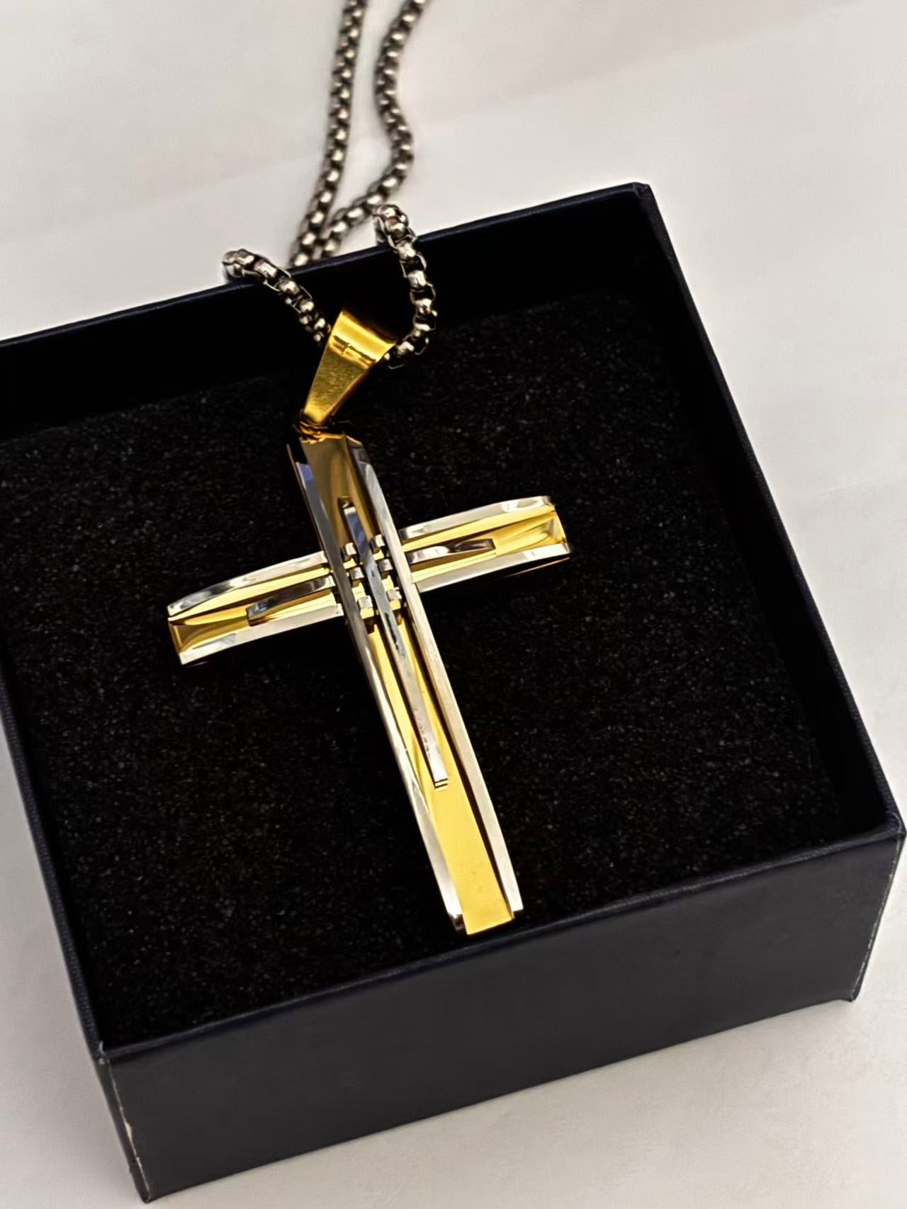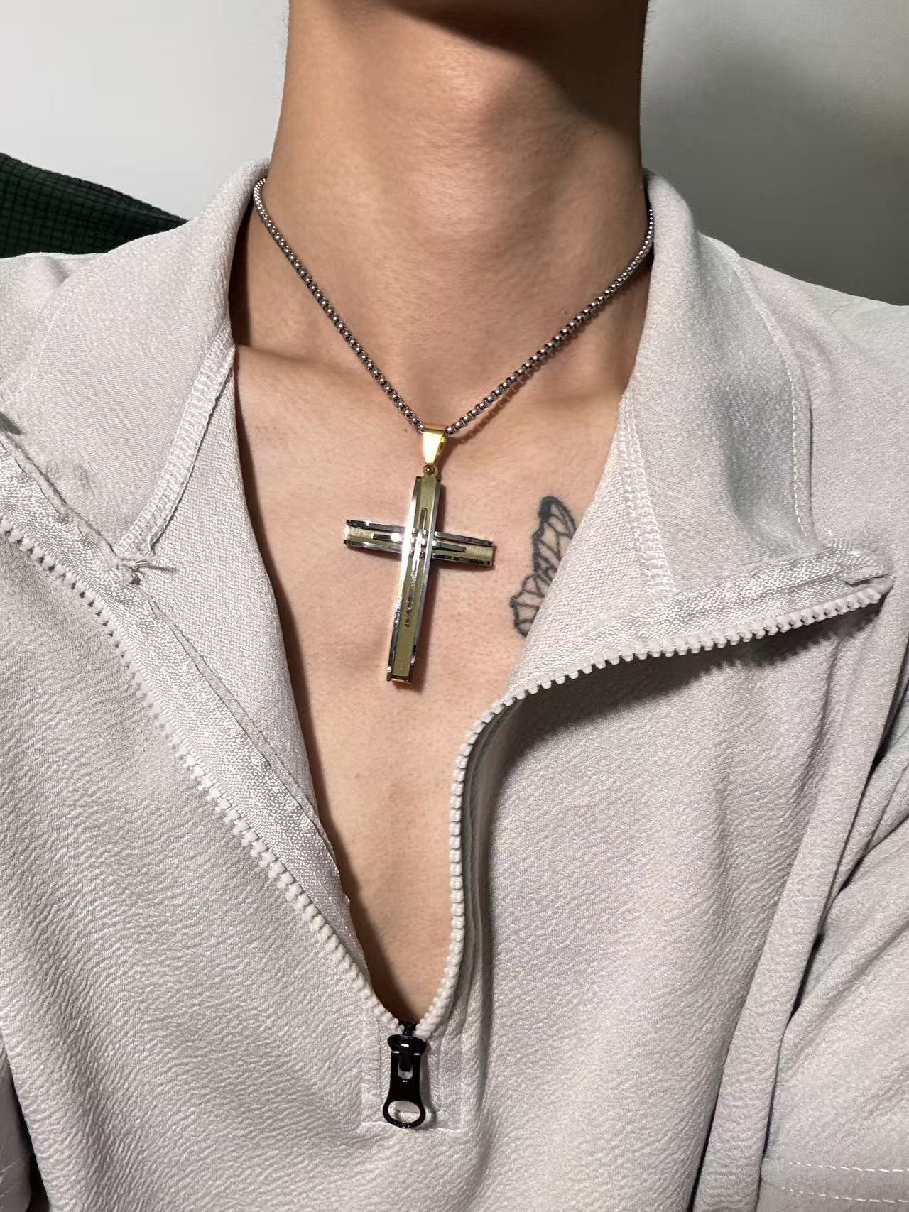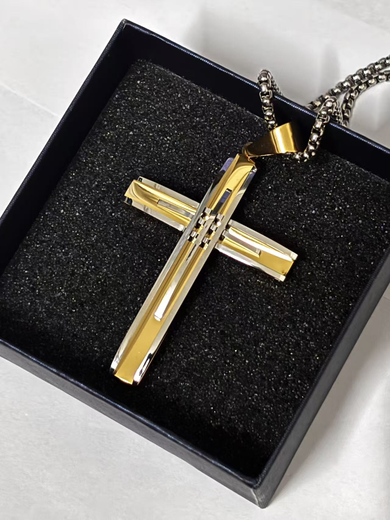 双拼色高端十字架吊坠