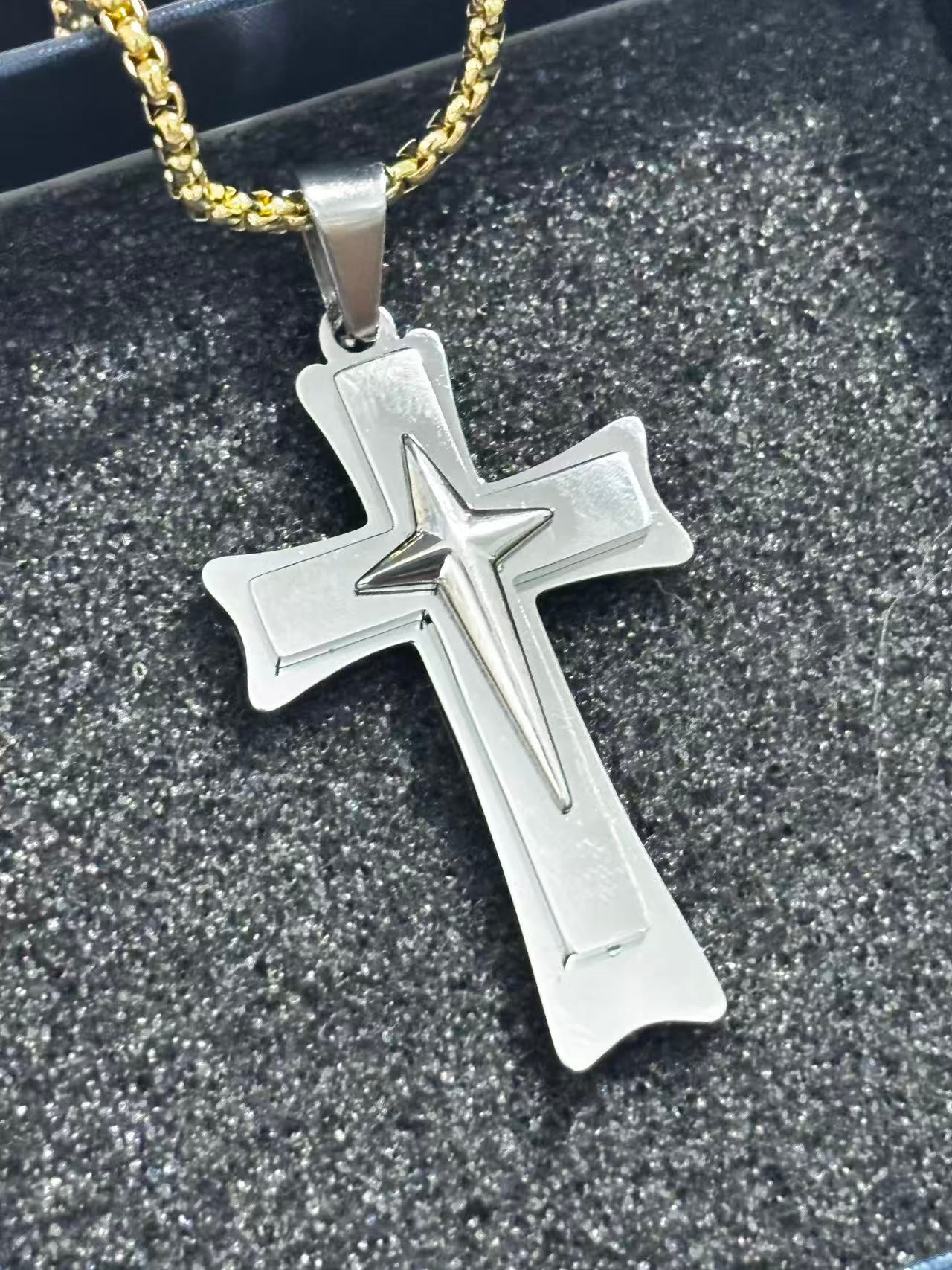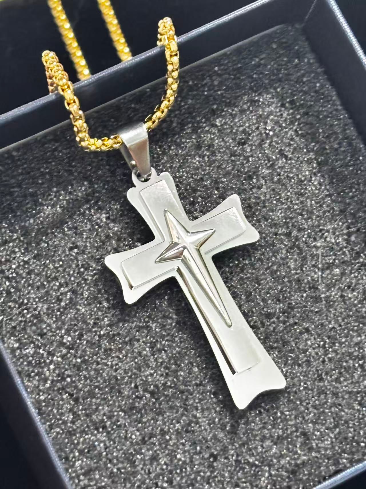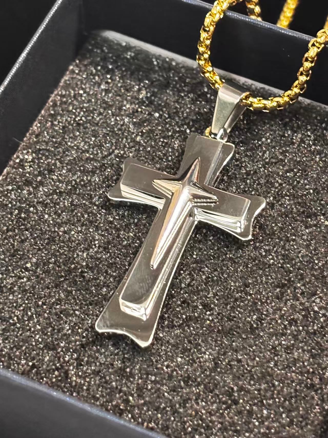 金星钢色十字架吊坠