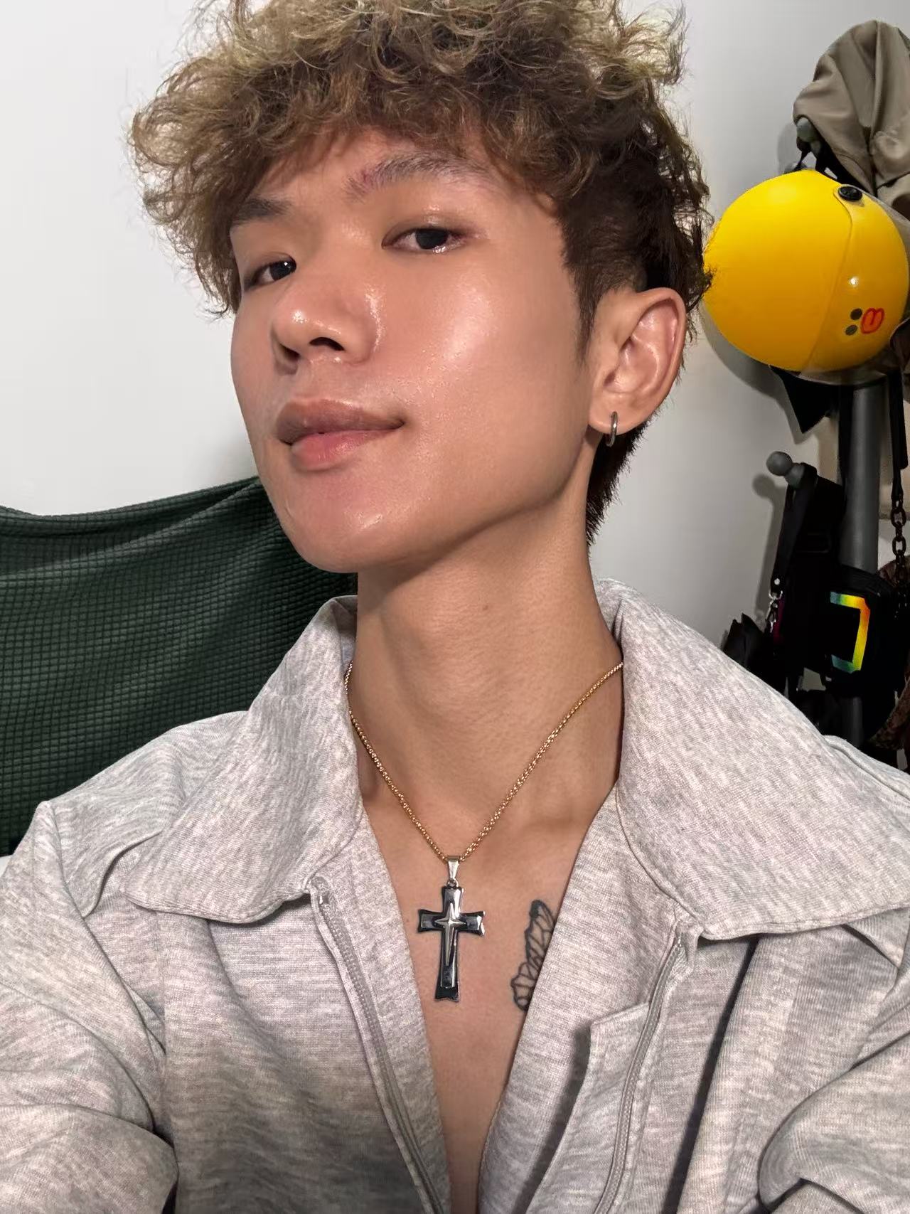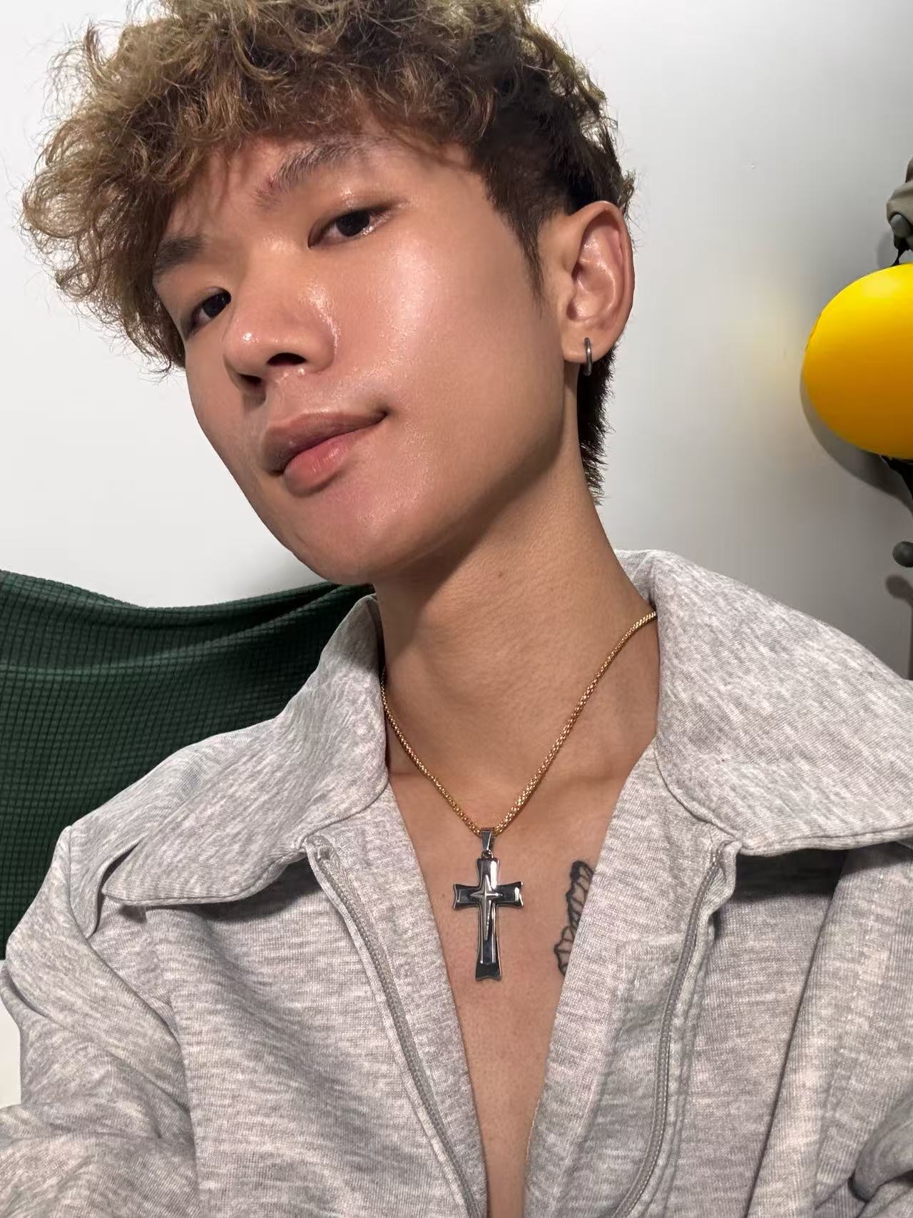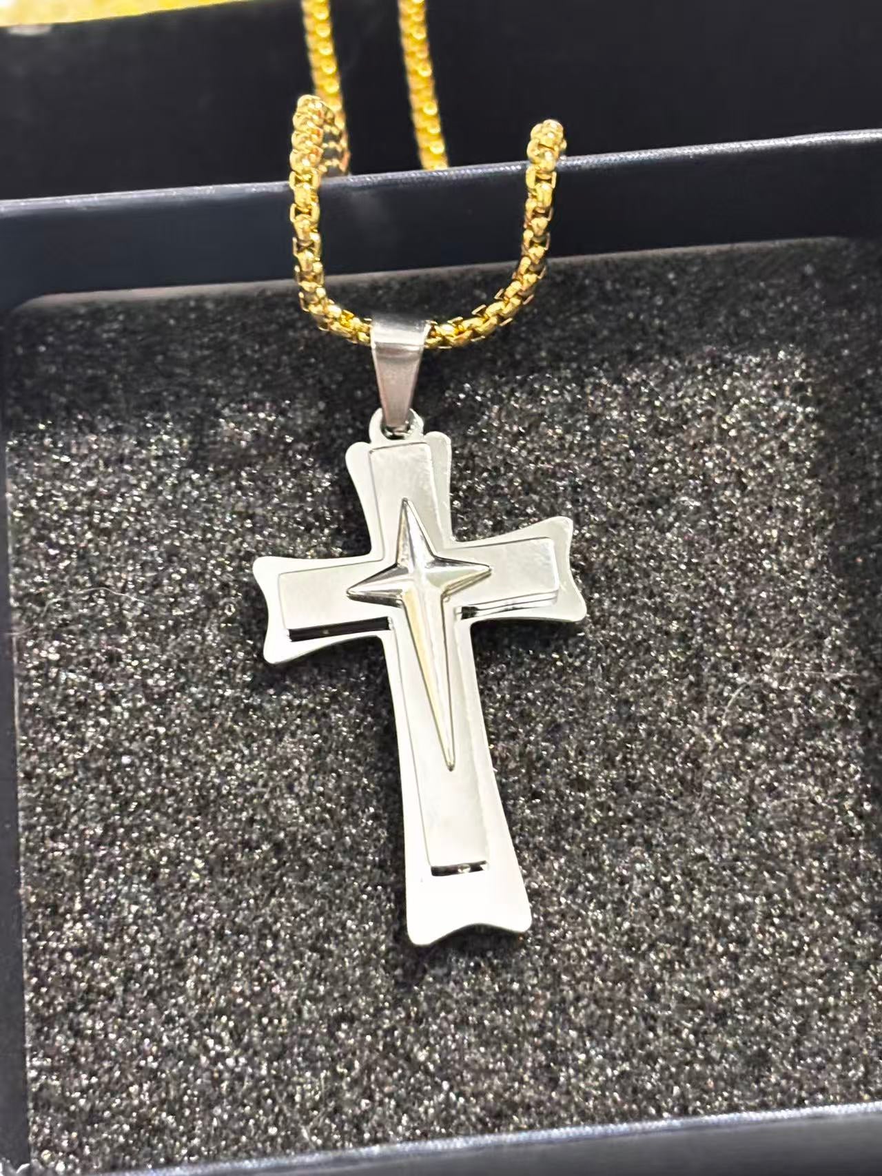 金星钢色十字架吊坠