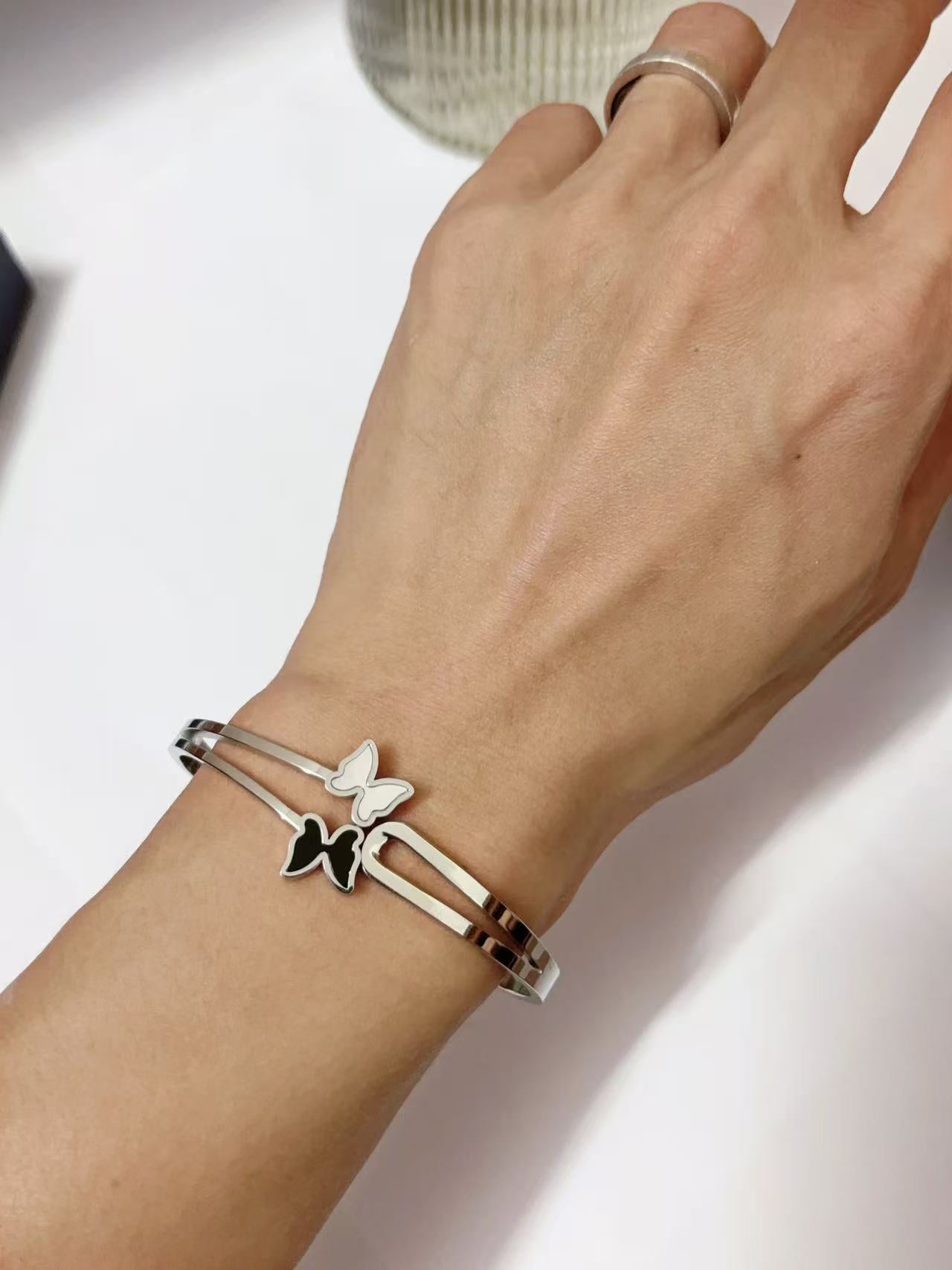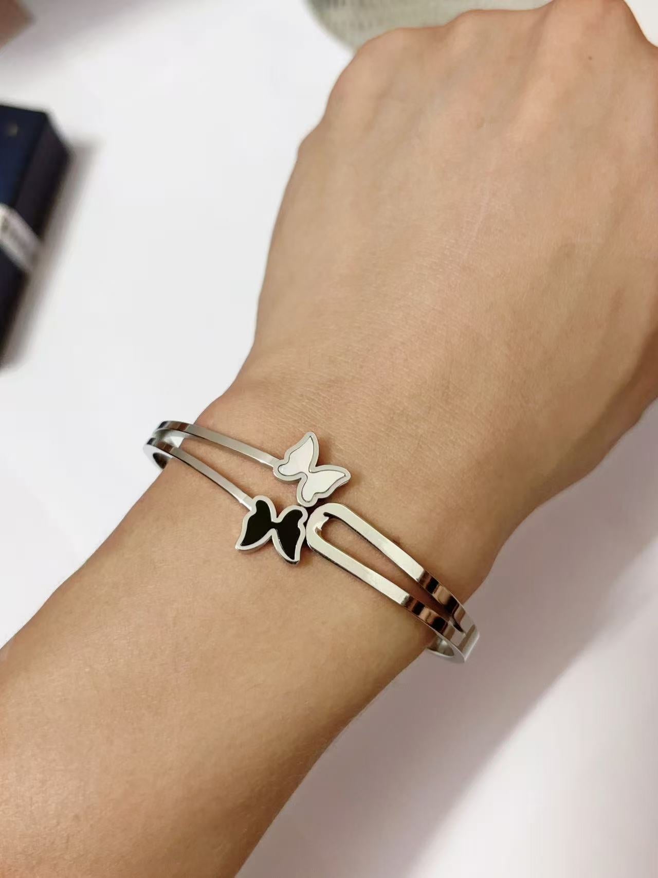 钢色双蝴蝶分飞手镯