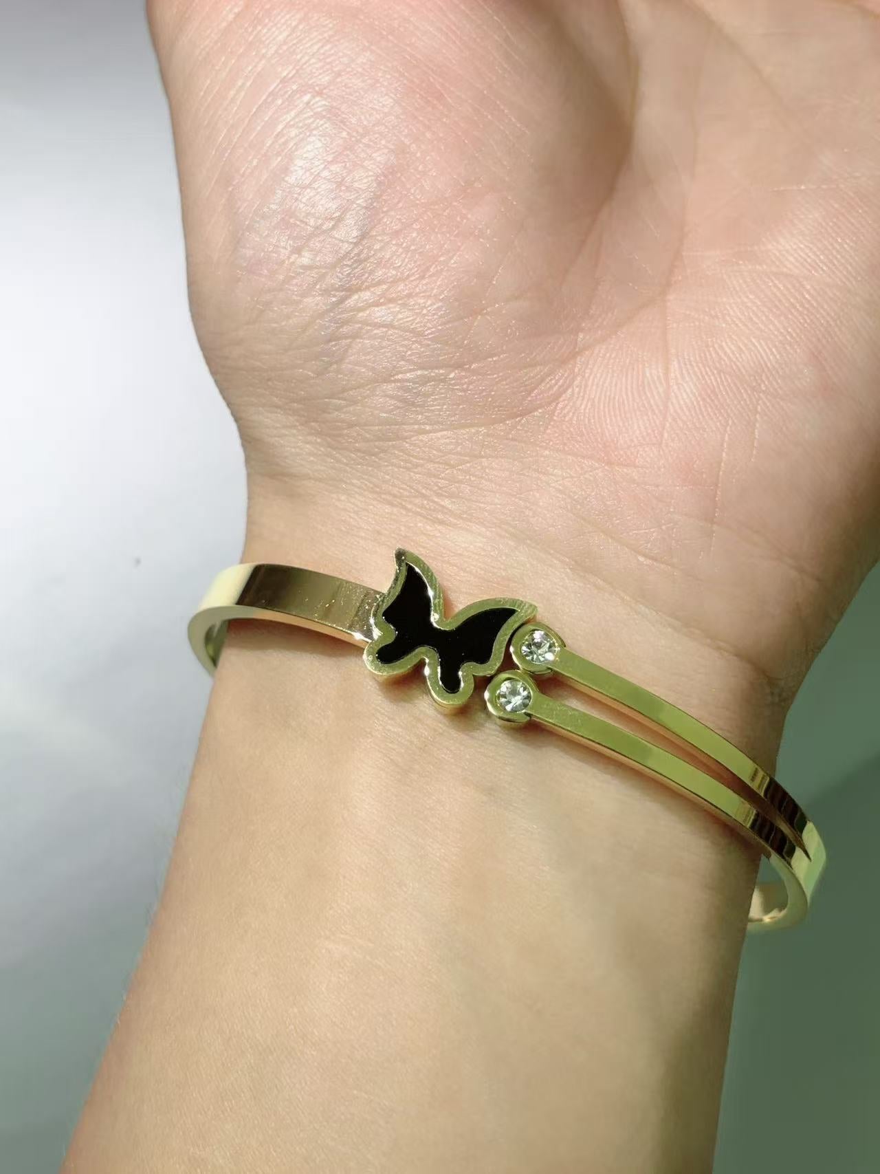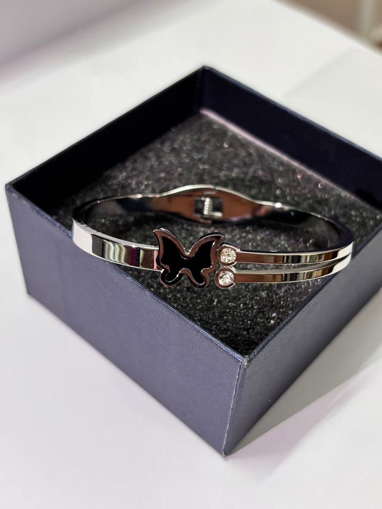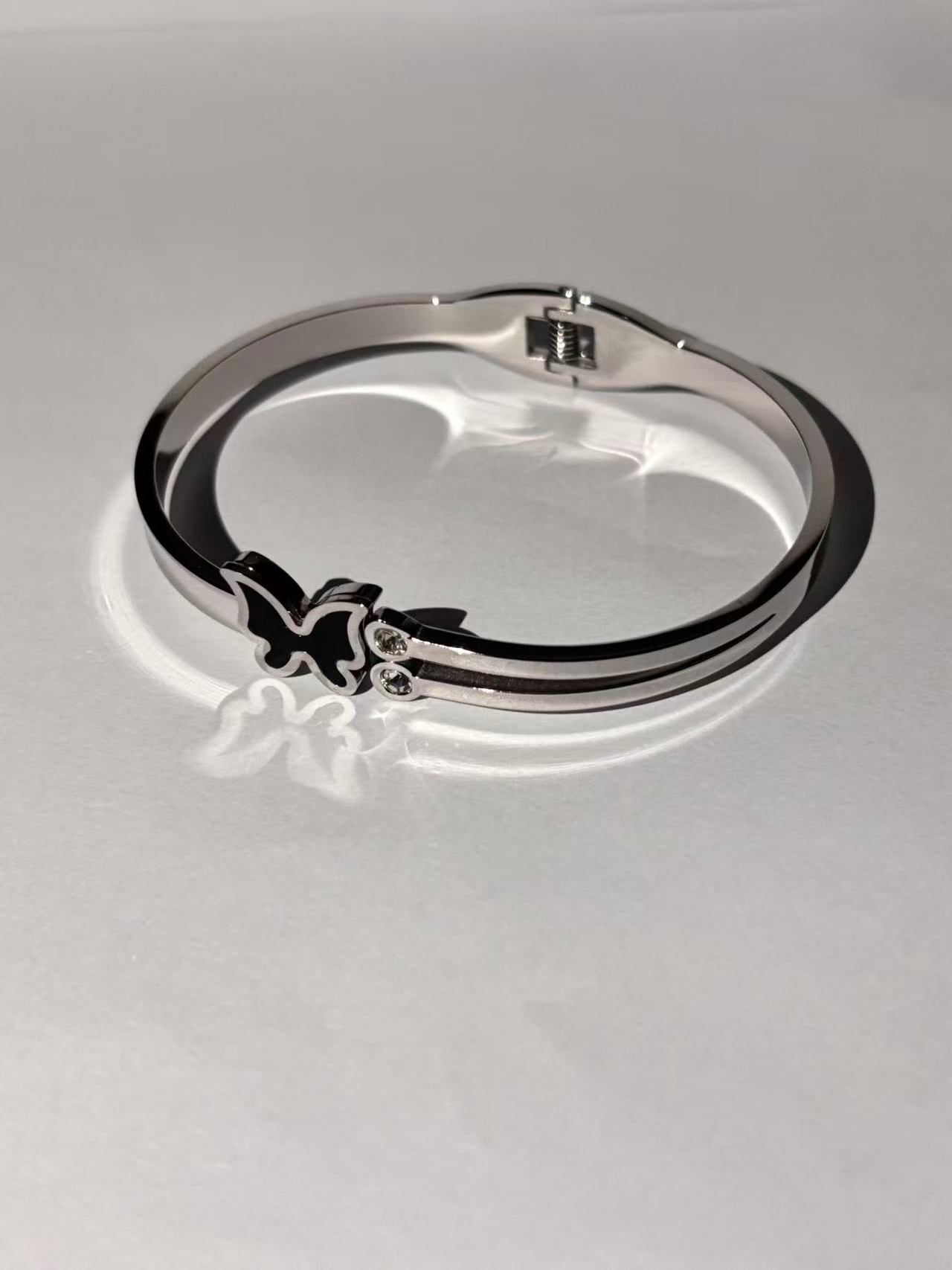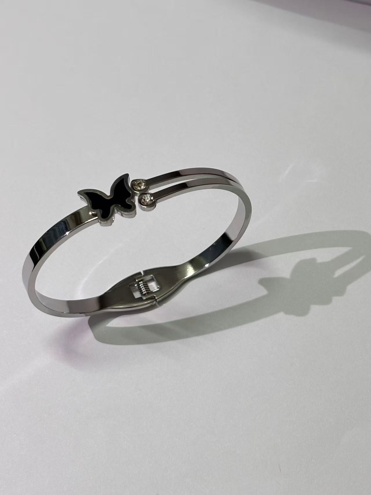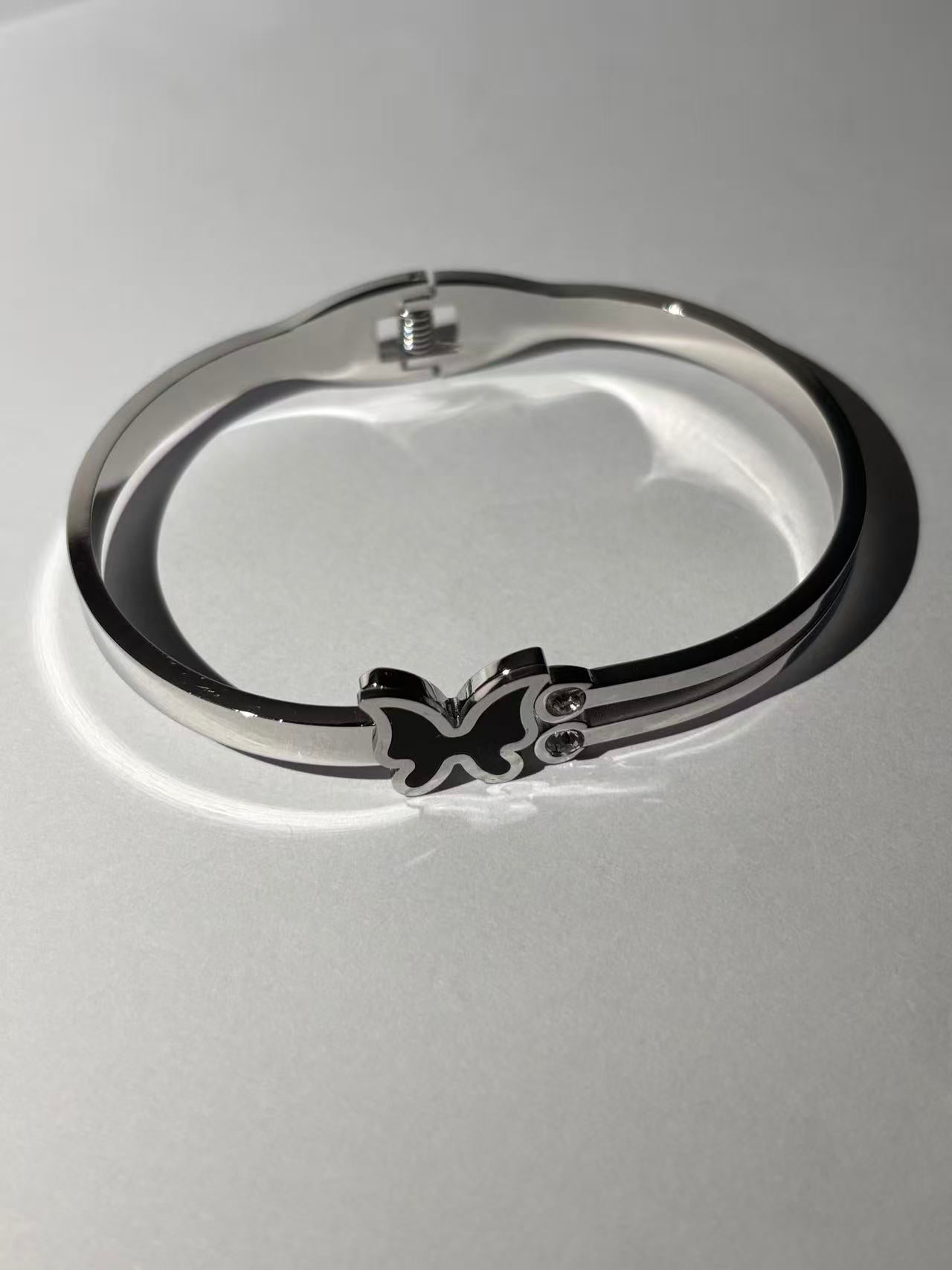 黑蝴蝶双石弹簧手镯