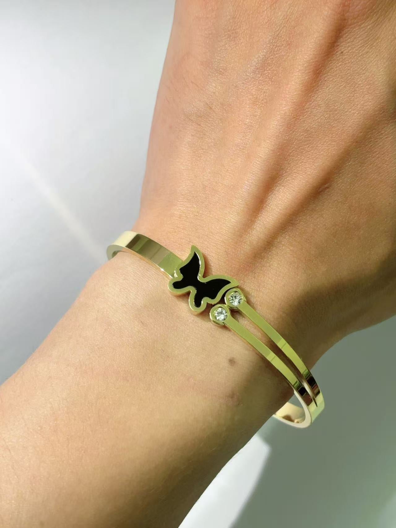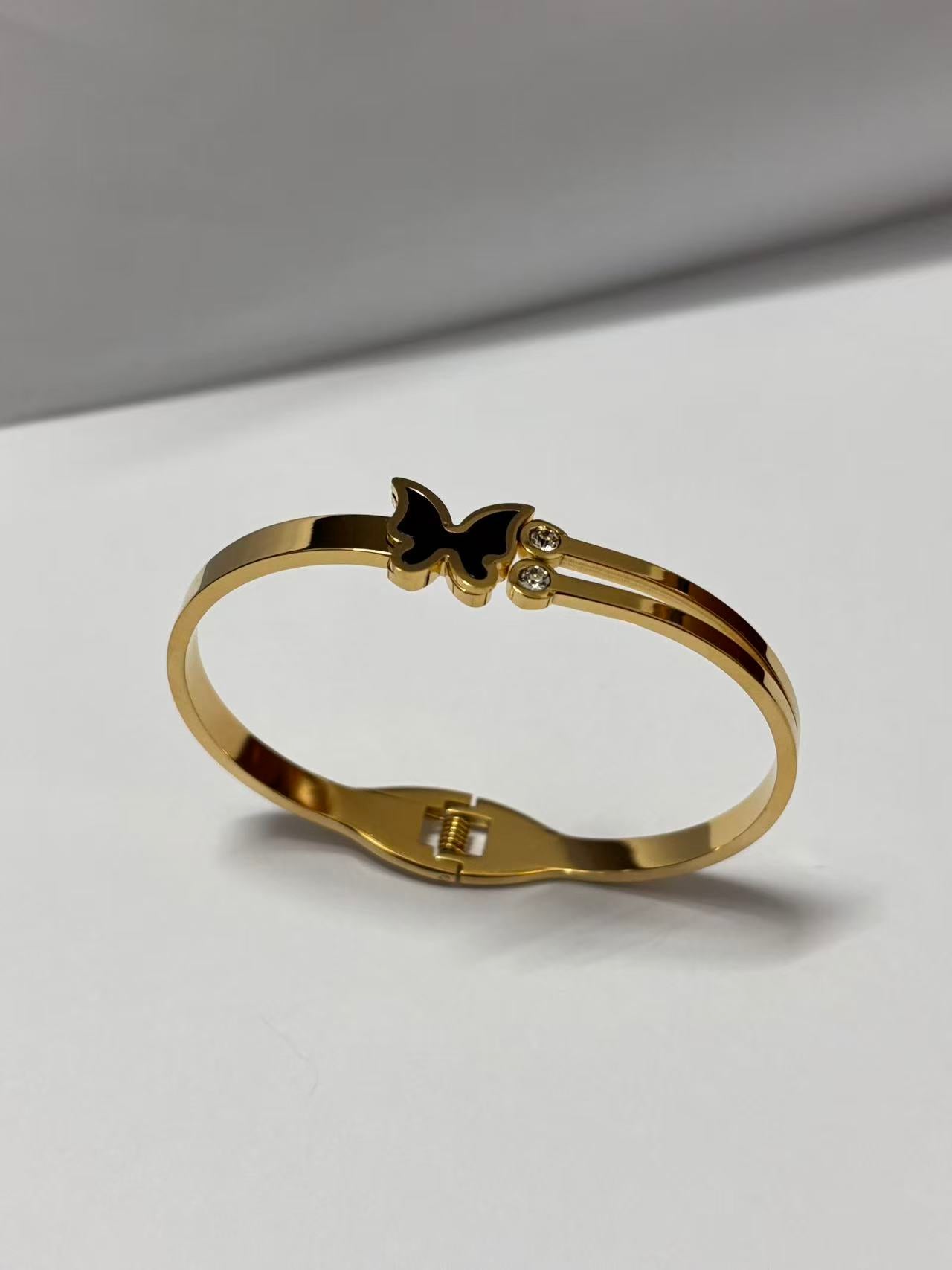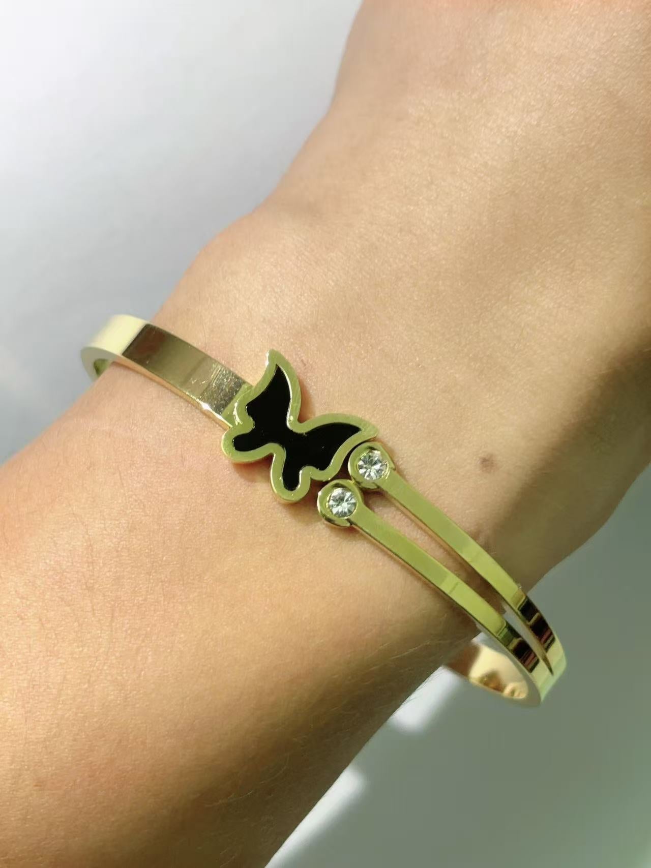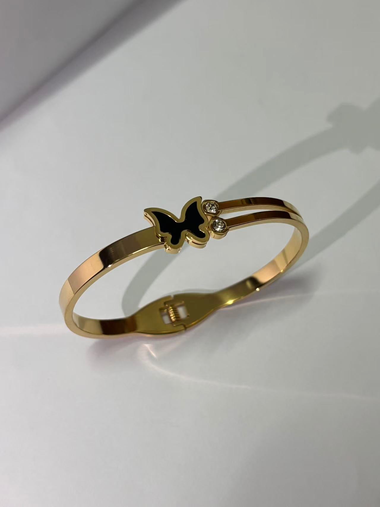 黑蝴蝶双石弹簧手镯