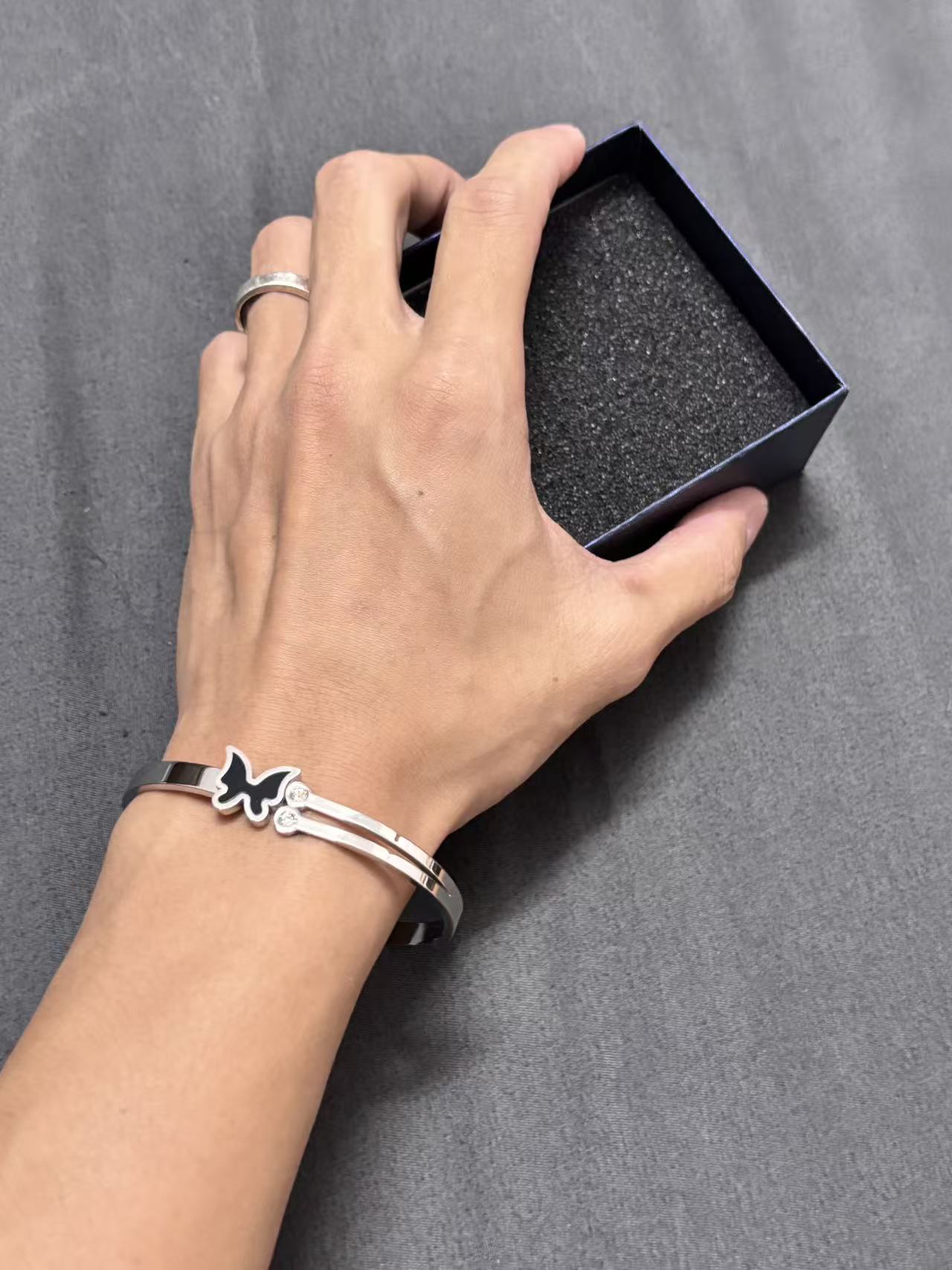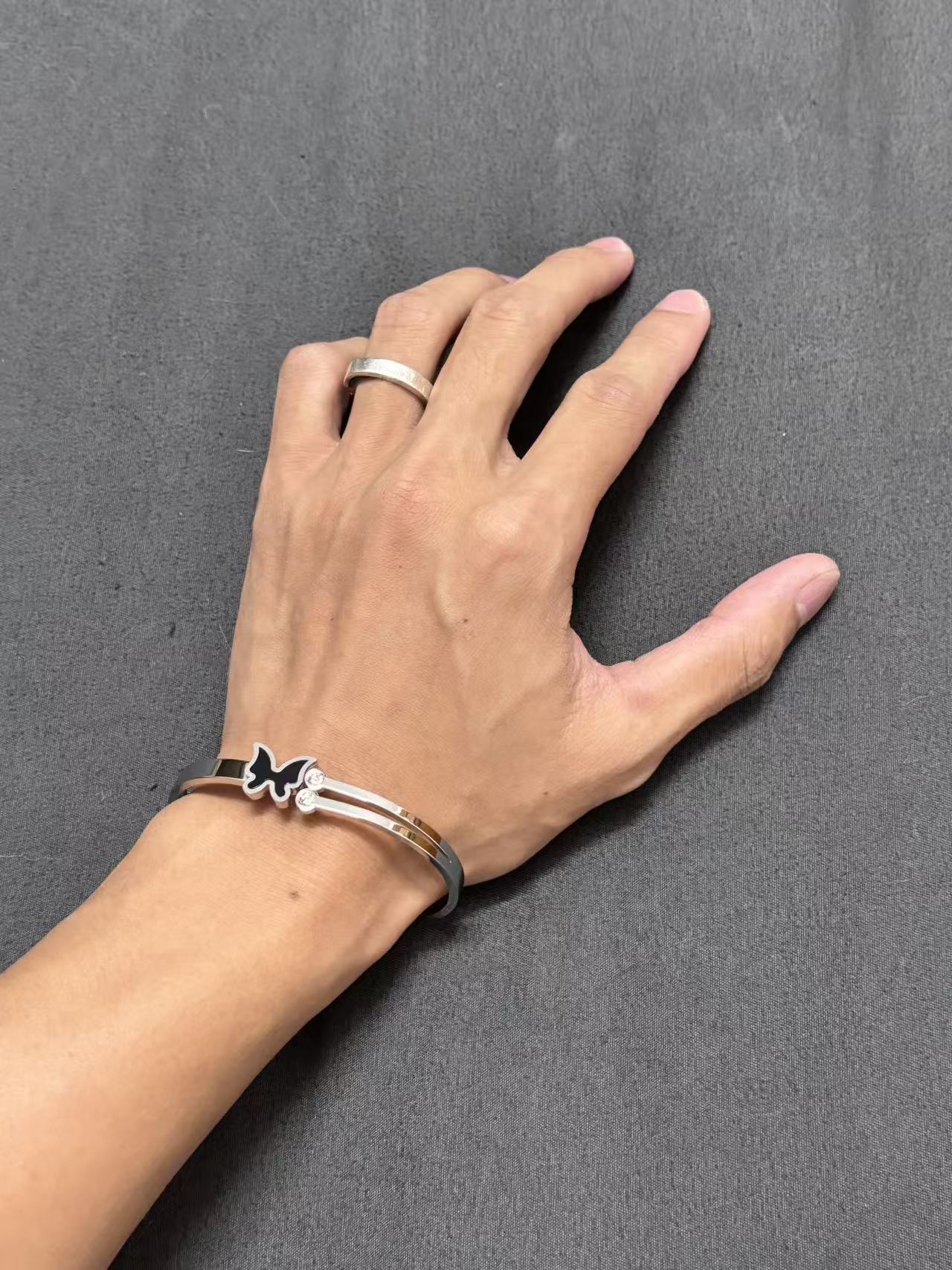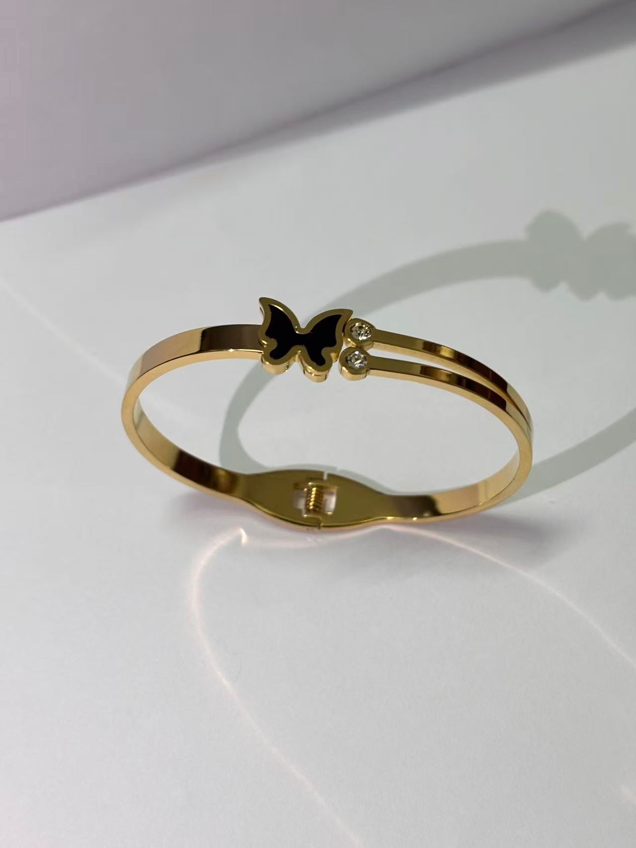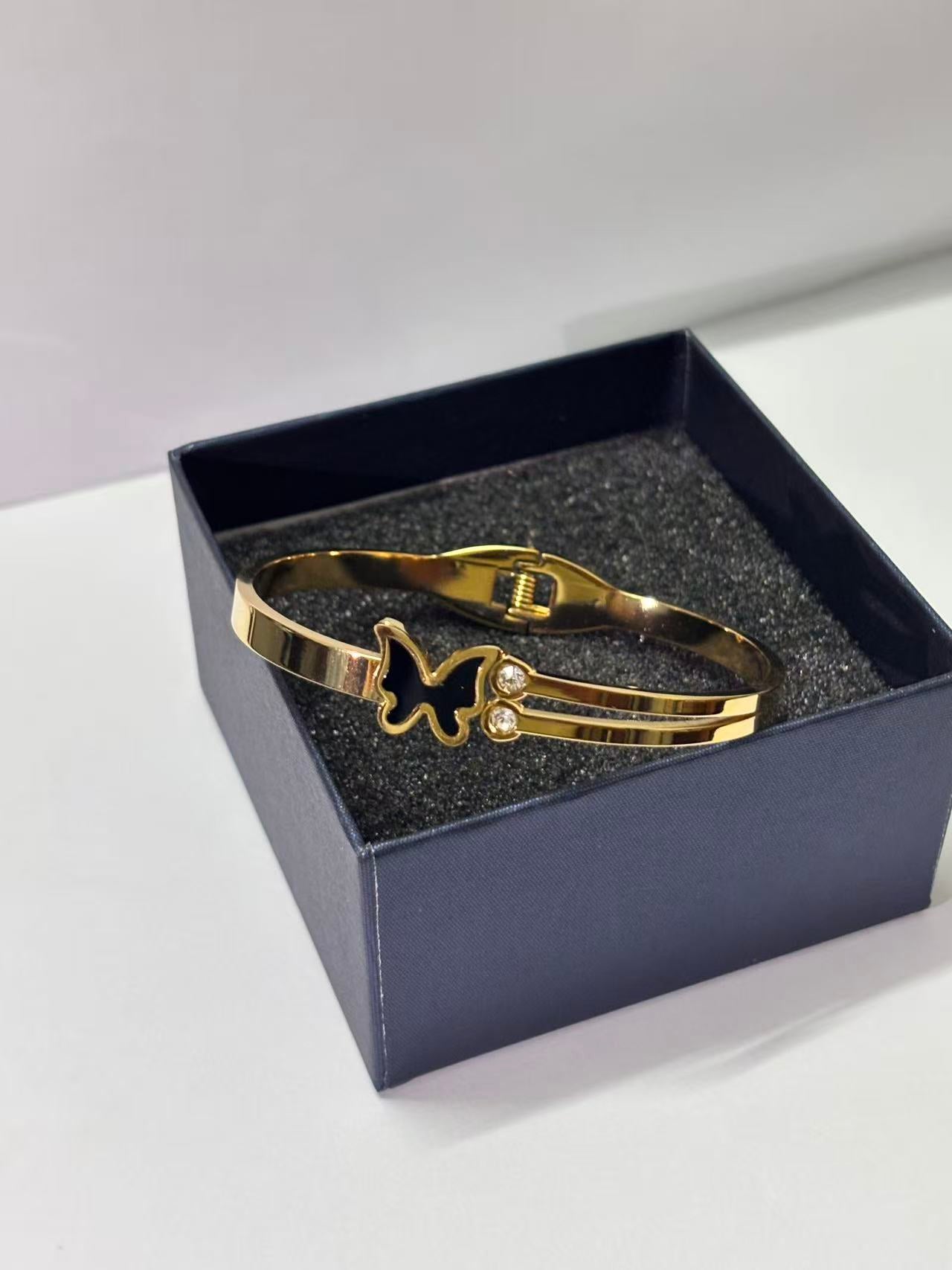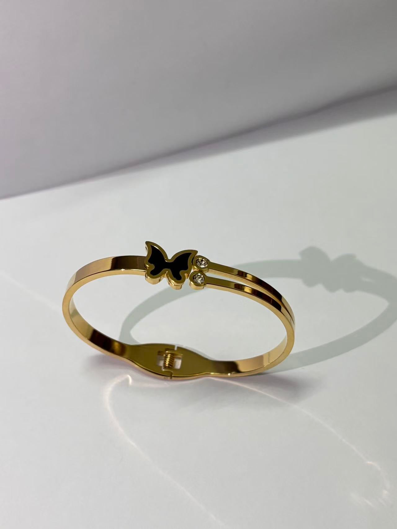 黑蝴蝶双石弹簧手镯